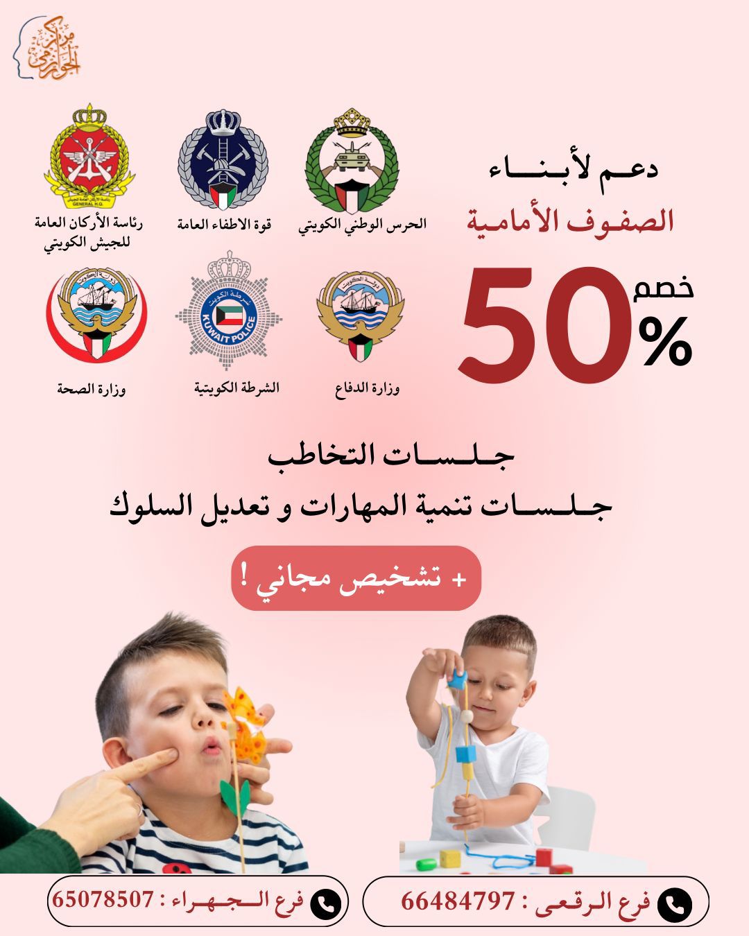 ساري حتى نهاية شهر أبريل خصم 50% علي جلسات *التخاطب- تنمية المهارات- تعديل السلوك